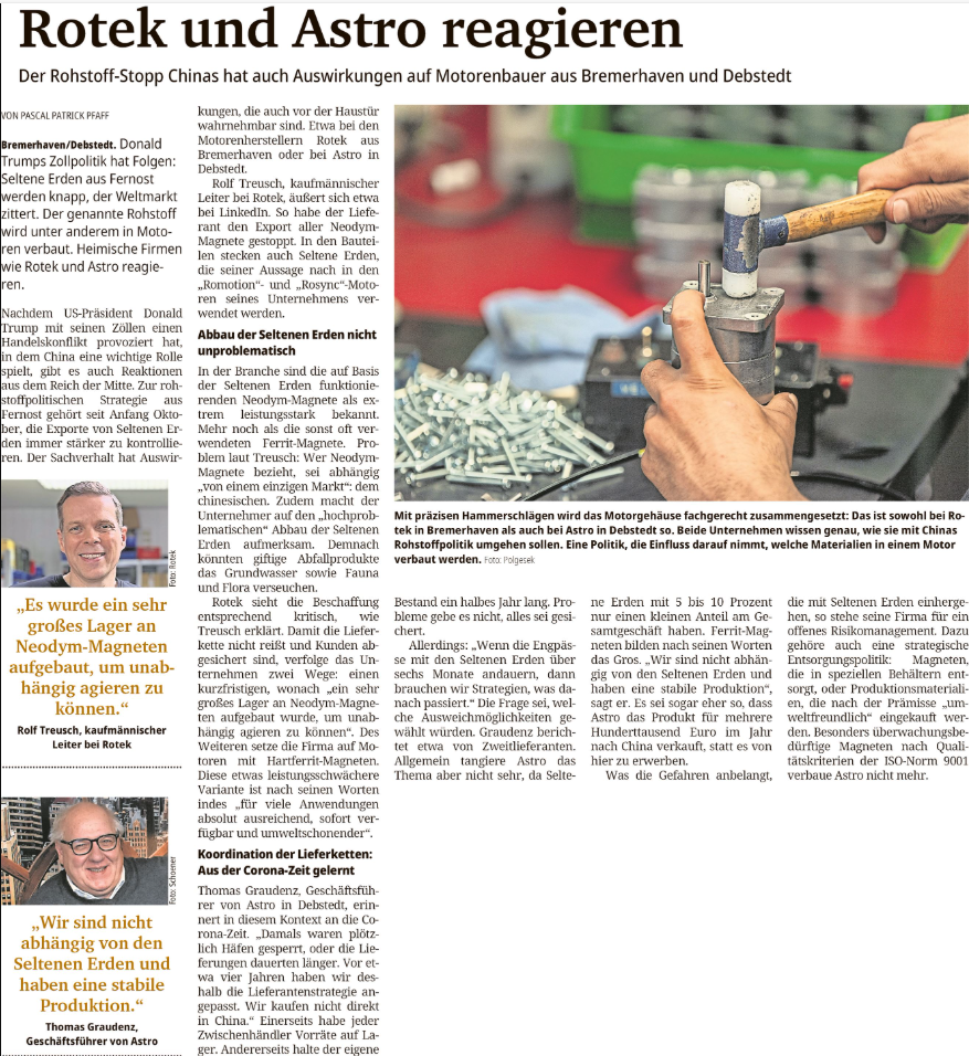 Bericht der NZ: ASTRO und ROTEK kommen zu Wort